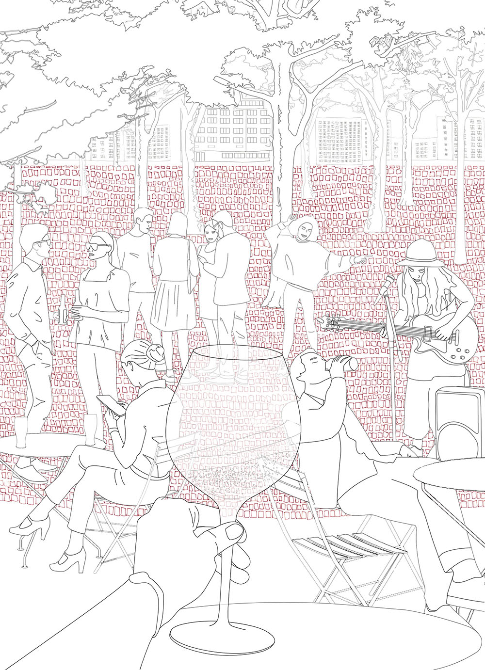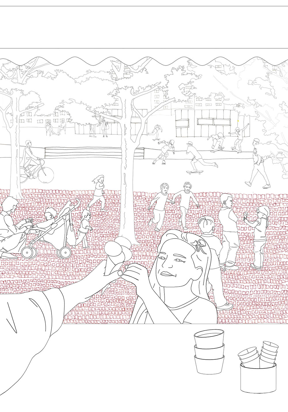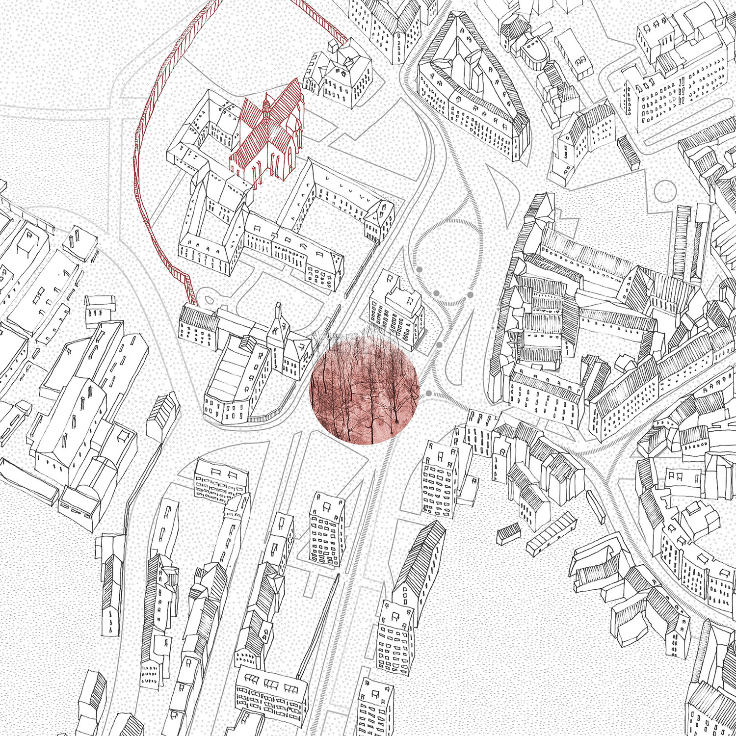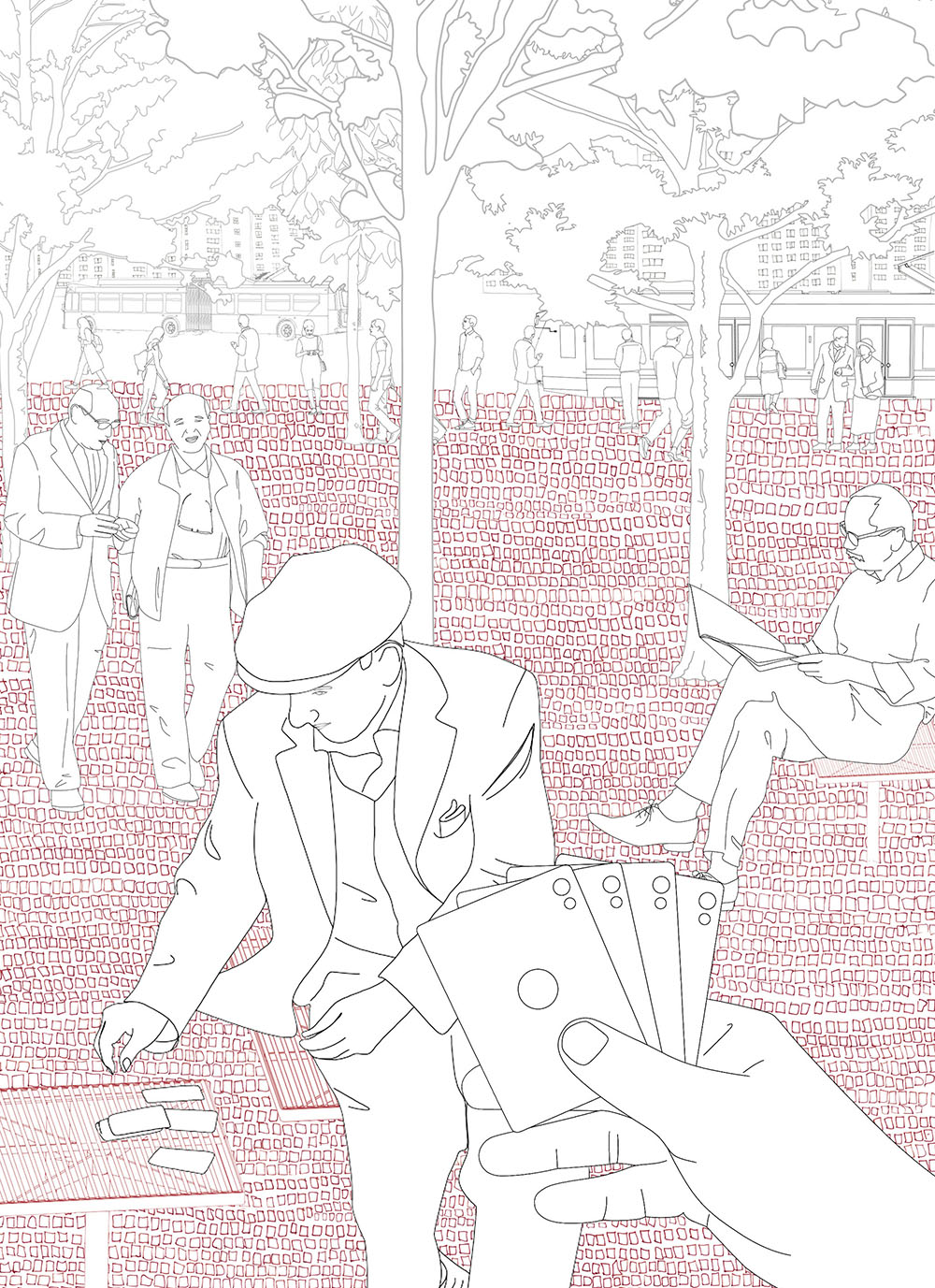 The primary concept underlying the drawings is to illustrate the harmonious integration of nature, people, historic structures, and infrastructure. Each element is intricately linked to the iconic red plaza situated at the city’s core, collectively contributing to the creation of a distinctive spatial and visual experience.